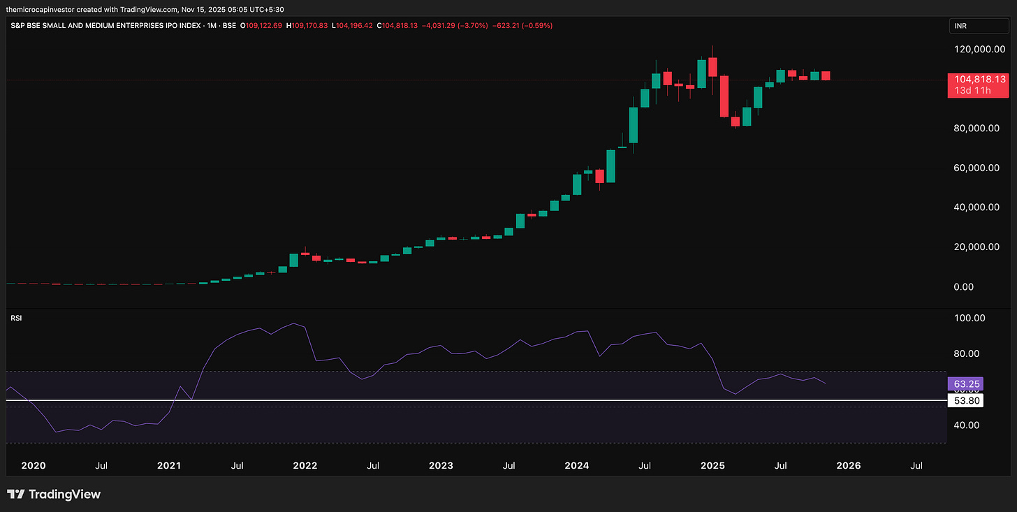 On a monthly timeframe, the RSI for SMEIPO is nearing crucial support Zones.